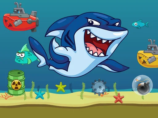 Use the arrow keys to move the shark, the X key to shoot. On mobile devices, use the on-screen buttons.