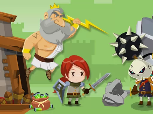 You have to defend the kingdom from the enemy who is very strong. In the game Defense Battle your task is to defeat waves of enemy attacks, exposing your units. The enemy will move along the paths, seeing the next enemy, put in front of the defense. It may be Zeus, which throws lightning, but it is effective over long distances. Flamma - a warrior who wields a sword, he prefers close combat. You can install blocks of stone, they will slow down the movement of rivals. Be sure to install bags with a set of potions of power, the more they are, the faster its supply will be replenished and you can add more soldiers to the battlefield. There are 9 levels where you must eliminate the troop of skull soldiers. With each level the game gets more challenging. Be very careful with the Stone Monster, it can destroy your base if it invades your territory.