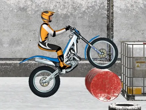 Trials Ride is a free online game that you can play at FunBestGames.Com. There is a light frost on the street, the trees are covered with hoarfrost, and our hero is going to go through all the stages of the races on a specially built track, located at the nearest training ground near the forest. The barriers are made of boxes, iron, boards, wheels of different sizes and other materials and objects. At first glance it seems. It is simply impossible to overcome these buildings even on foot, and even more so on wheels. But our mountain bike is capable of a lot, and even in combination with the skill of the driver, any track is subject to it. Use the arrows to control the movement of the hero. It's not speed in Trials Ice Ride that matters, but agility and balance. Align the bike while jumping to land on the wheels and not on the rider's head.